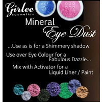 This super shimmer Black Gold Stunner is formulated with a black base so the golden glitter really stands out. Girlee's fabulous Mineral Eye Dust pigments are super high-intensity pigments and available in an incredible array of colours to accent eyes, lips, face and body areas. They can be used alone as shadows/powders; or you can use over pressed colours for amazing intensity and/or contrast, or you can mix with Girlee’s Eyeliner 'Activator' to create a liquid liner and/or shadow.