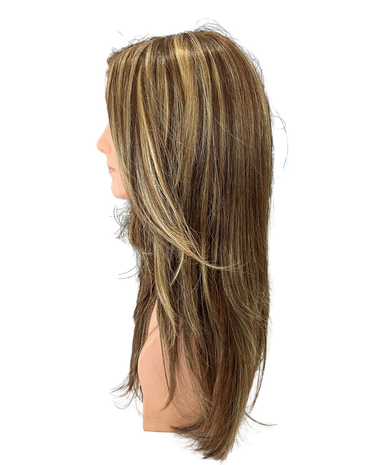 Candice Lusciously Layered Long Straight Highlighted Chocolate Lace Front Mono Top Wig