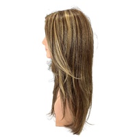 Lace Front with an invisible hairline as well as hand tied Mono Top for the most realistic appearance and flexible parting, this long slightly layered style cascades beautifully at the sides and back. The long side swept fringe frame the face for an ultra feminine look. She has enough length to pull back into a low pony or clip and the gorgeous blend of rich medium dark with strategic highlights enhances the curls.