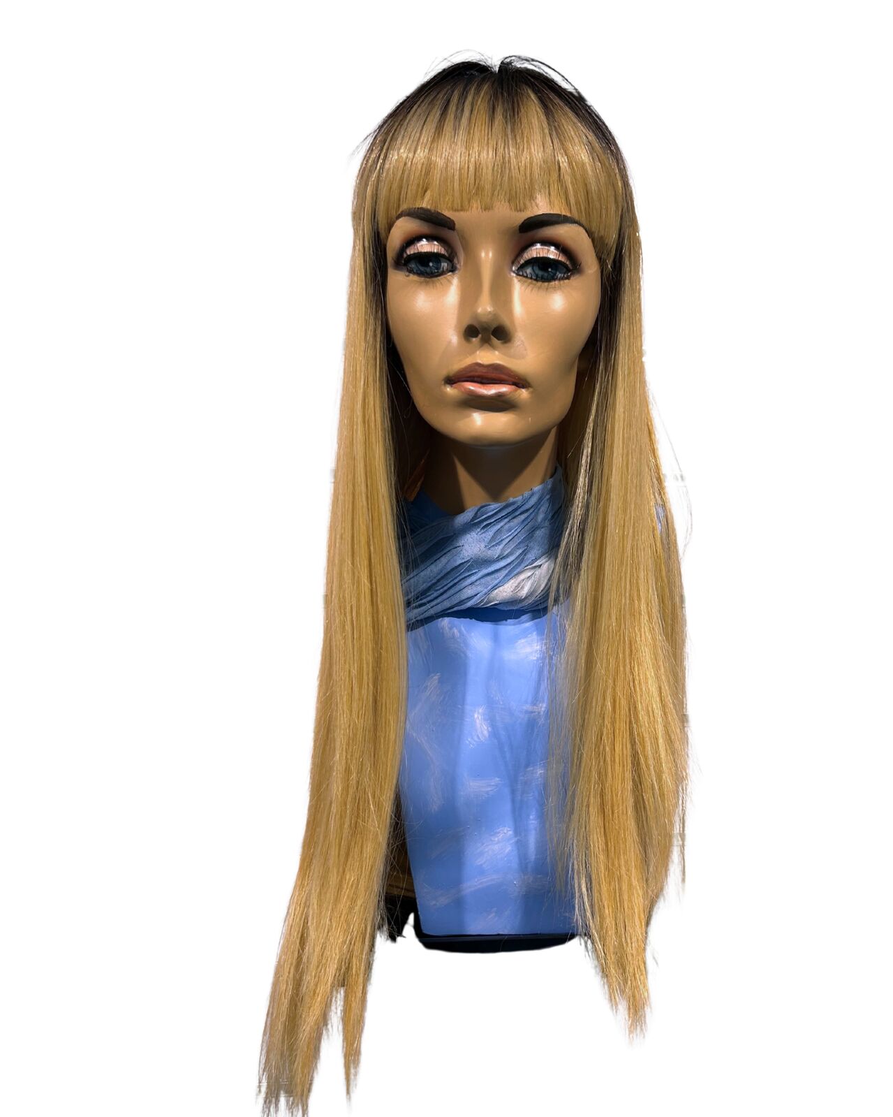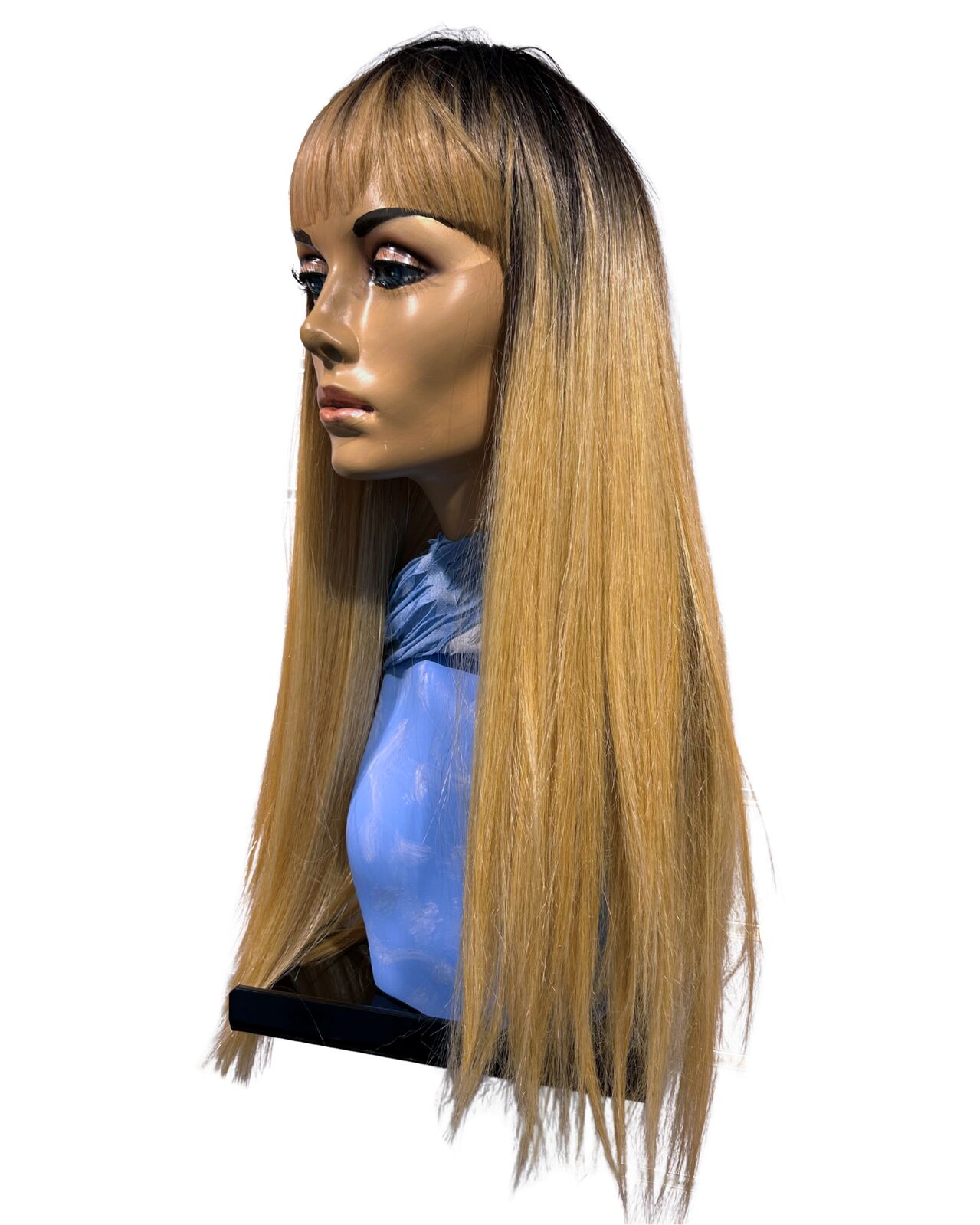 Sensational 27" Long Caramel Blonde Straight Fringed Wig