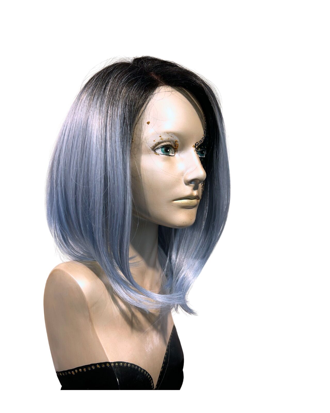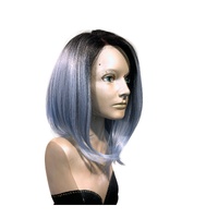 Vivacious Dramatic Asymmetrical Lace Front Long Bob Icy Blue Wig